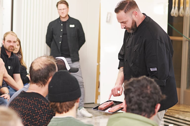 In meinen Kursen vermittle ich fundiertes Fleischwissen: Cuts, Reifung, Qualität, Sensorik, Tierhaltung, Verarbeitung und moderne zubereitungs,Techniken.